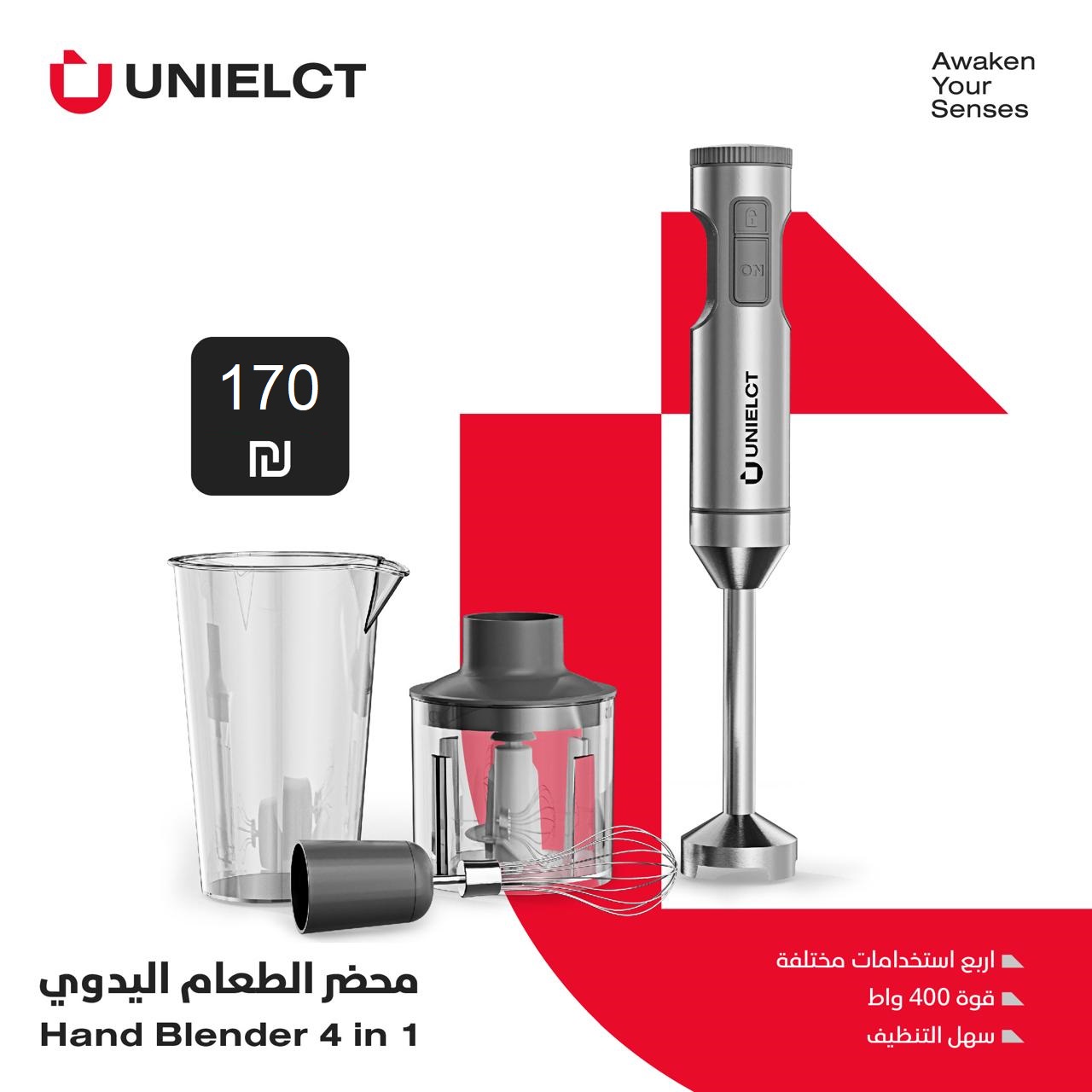 • Description4-in-1 Functionality: Blend, chop, whisk, and puree with one devicePowerful 400W Motor: Delivers smooth and consistent results in secondsEasy to Clean & Use: Comfortable design with detachable parts for quick cleaningHigh-Quality Materials: Built for durability and long-lasting performance