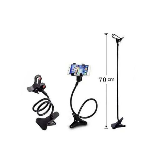 Flexible customizable bendable arm, adjustable clamp base, and adjustable phone clip. |